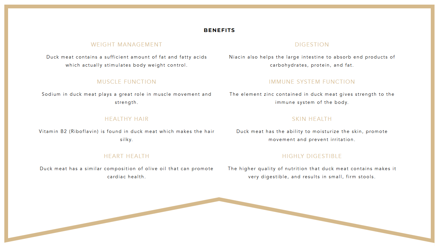 Single Meat Protein - Duck with vegetables & coconut oil; Grain free & Gluten Free.