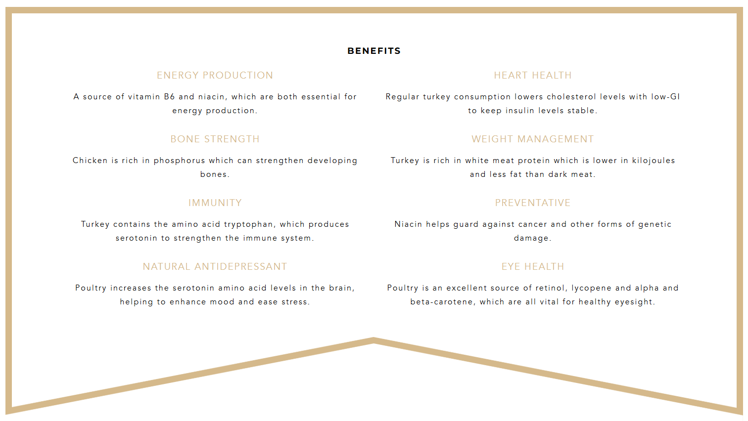 Packing a nutritious punch a kitten needs during the important early stages of life. Low GI protein with fewer kilojoules and less fat than dark meat.