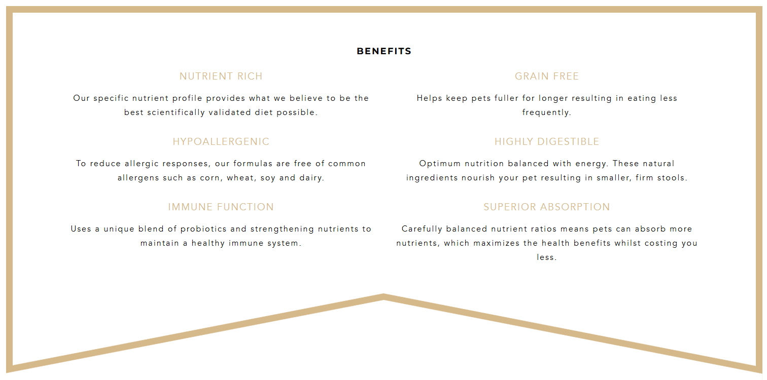 Gold standard holistic pet care, ensuring your dog gets the nutrition it needs by using only pure foods, with no meat by-products.