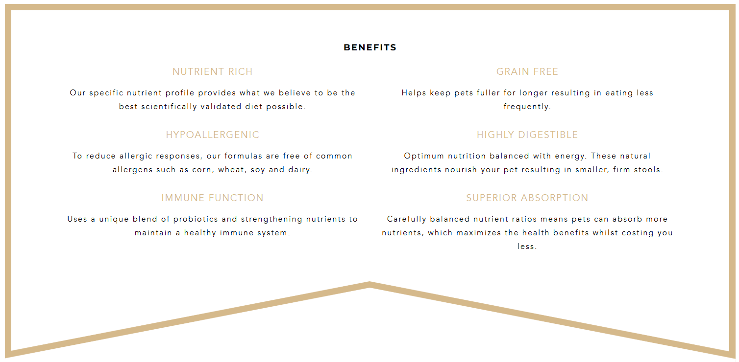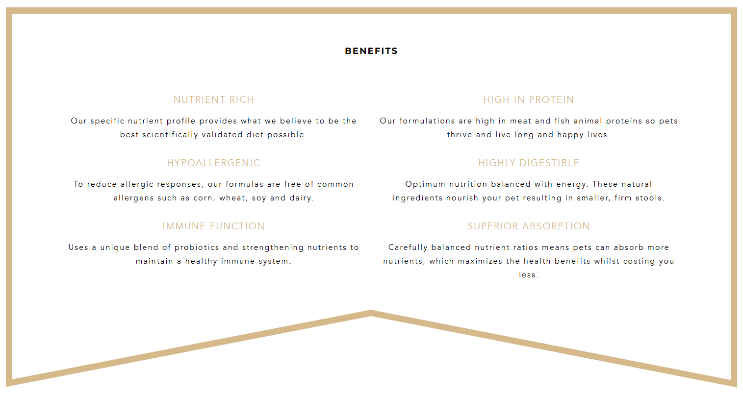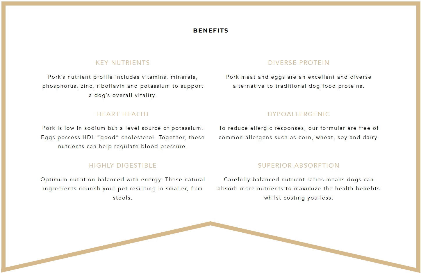 Gold standard holistic pet care, ensuring your dog gets the nutrition it needs by using only pure foods, with no meat by-products.