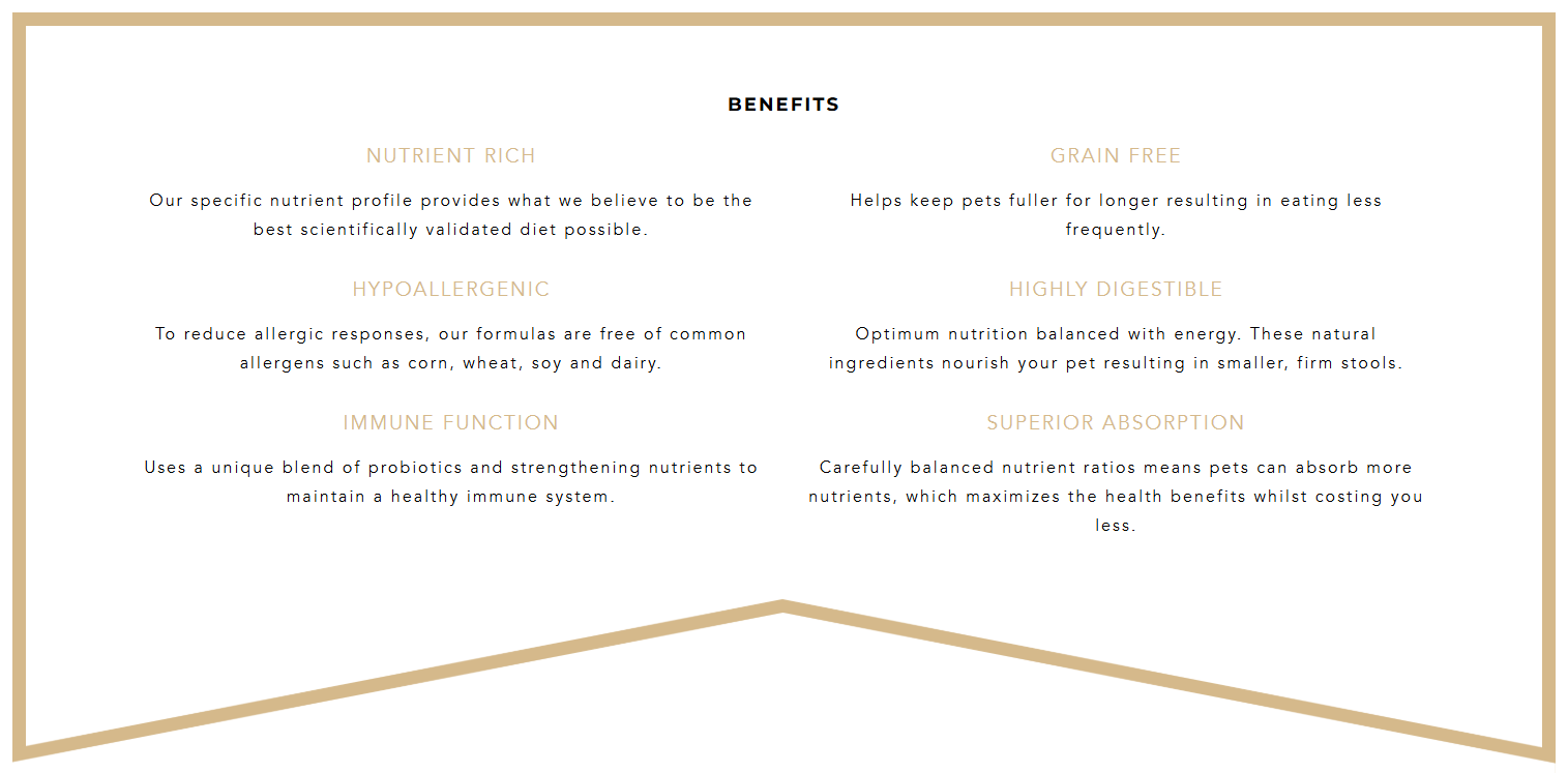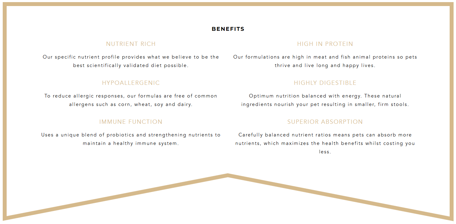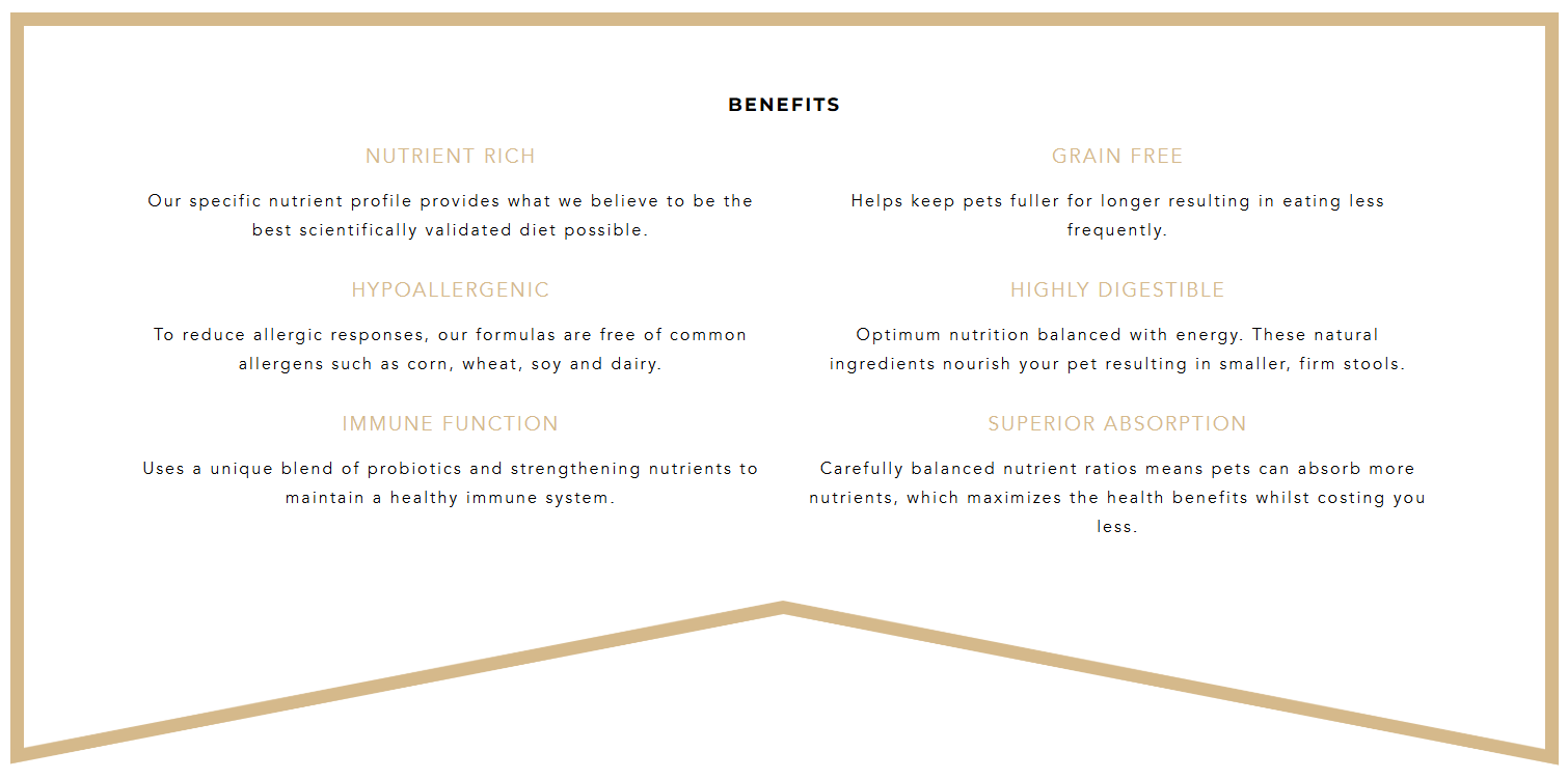 Gold standard holistic pet care, ensuring your dog gets the nutrition it needs by using only pure foods, with no meat by-products.