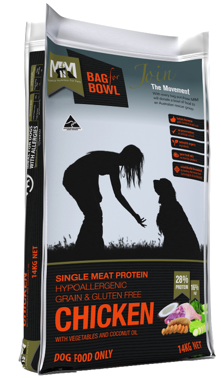Single Meat Protein - Chicken with vegetables & coconut oil; Grain free & Gluten Free. Available in 2.5 & 14kg bags.