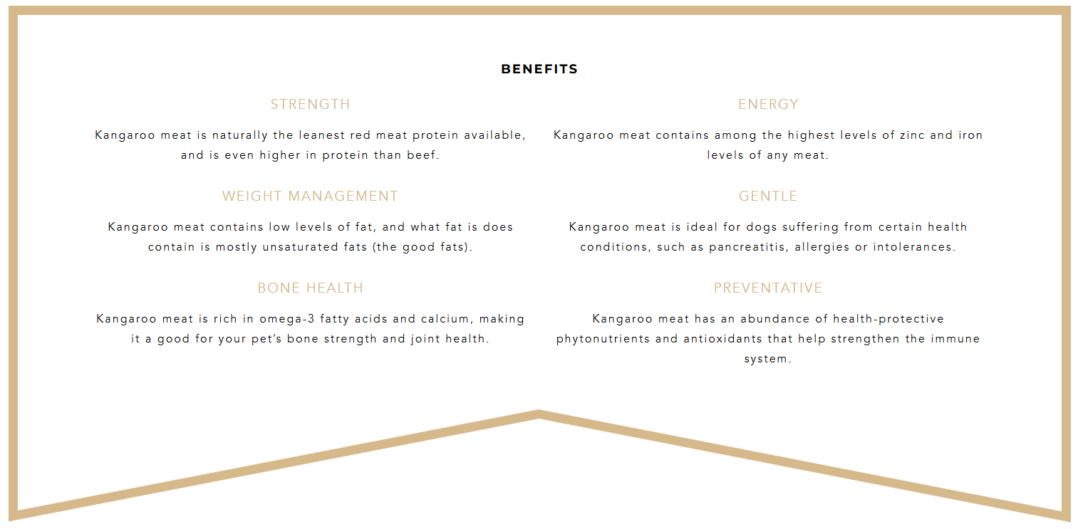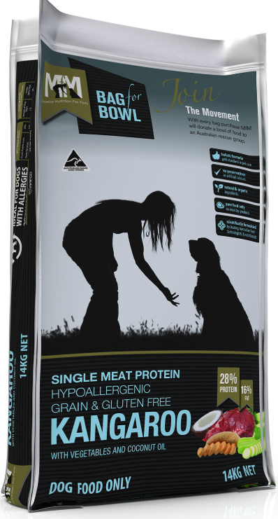 Single Meat Protein - Kangaroo with vegetables & coconut oil; Grain free & Gluten Free. Available in 2.5 & 14kg bags.