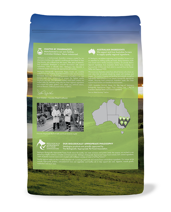 A tender balance of ingredients from Australia’s fertile farms so your puppy can enjoy this delicious and nutritious recipe.